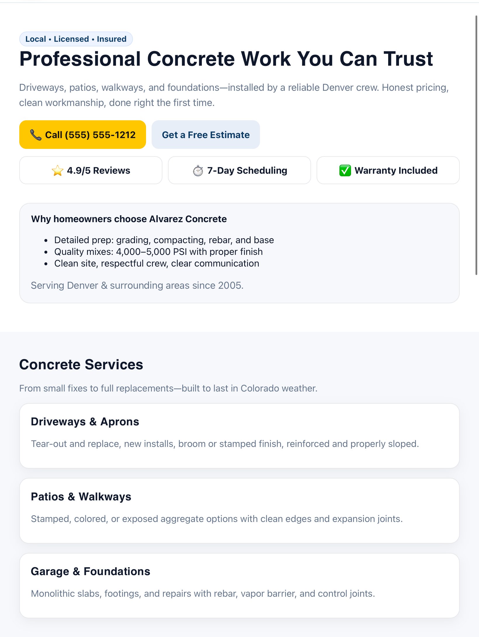 We work with the small businesses that keep Colorado running. From solo operators to full crews. The example below shows the exact website we build to help contractors look professional and convert more jobs.